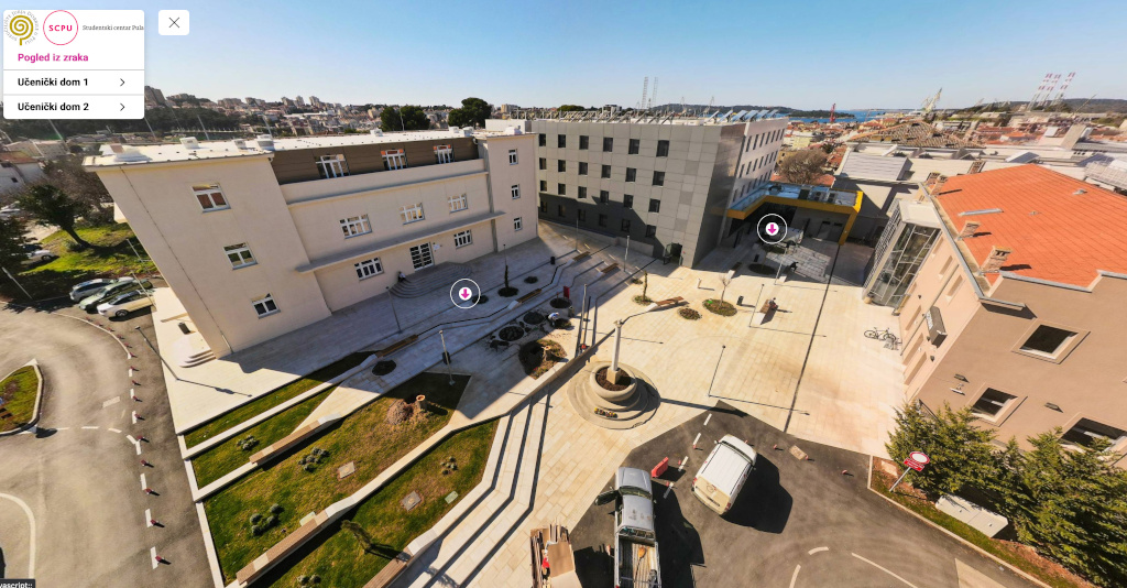 Tim je sredstvima na lokaciji nekadašnje kotlovnice izgrađen današnji Paviljon „2“ bruto površine 5.682,35 m2,  smještajnog kapaciteta od 194 ležaja u 97 smještajnih jedinica. Od ukupnog broja soba, njih četiri su prilagođene osobama s invaliditetom i osobama smanjene pokretljivosti, a u objektu su osigurani i pomoćni sadržaji namijenjeni dnevnom boravku, učenju i prehrani. Nekadašnja praonica rublja Opće bolnice Pula prenamijenijena je u Paviljon „3“ bruto površine 1.466,66 m2 s kapacitetom od 54 ležaja u 27 smještajnih jedinica s učionicama, čajnom kuhinjom i spremištem.