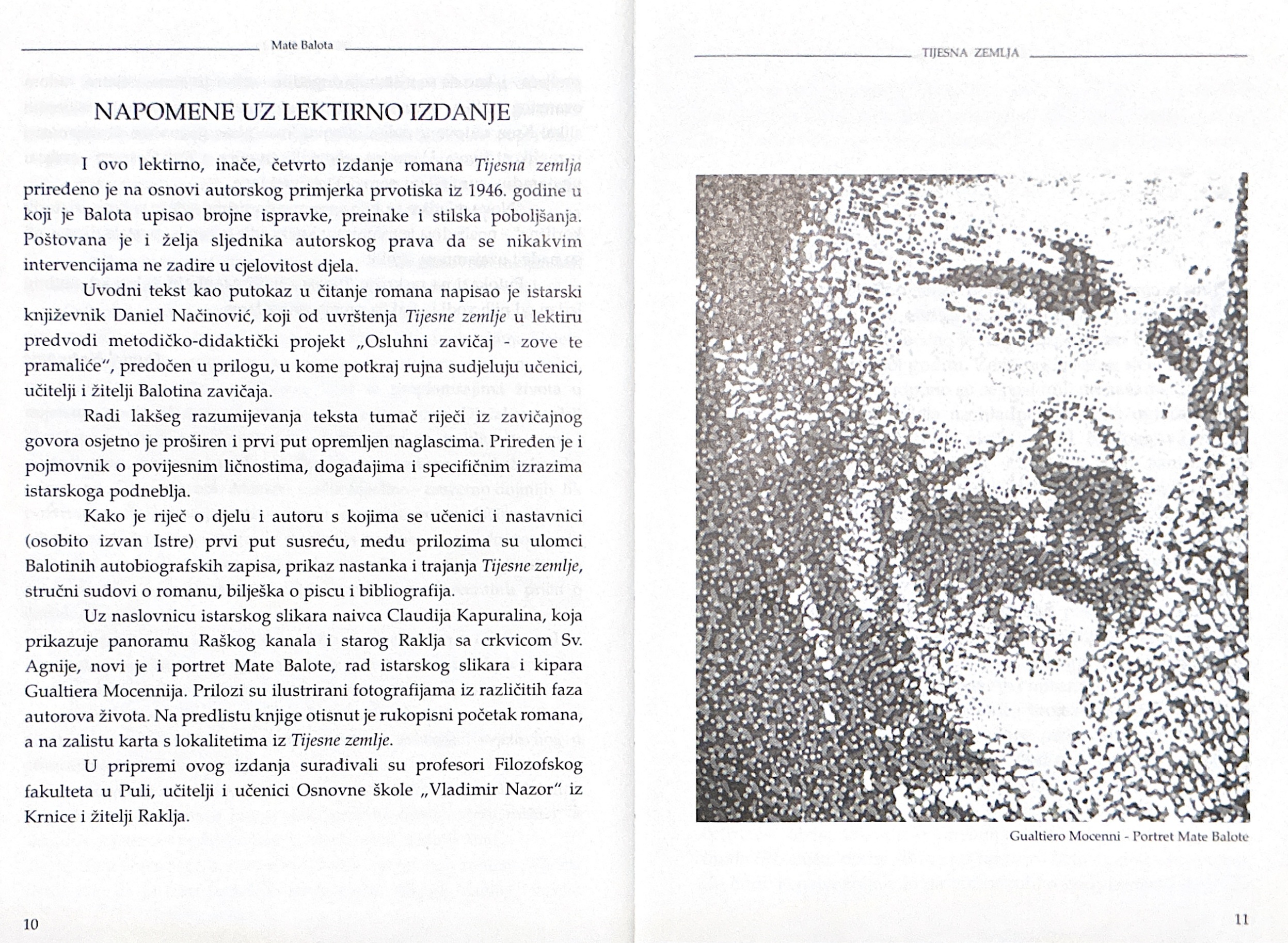 Iste godine na prijedlog iz Istarske županije „Tijesna zemlja“ uvrštena je u lektiru i u "Varteksu" tiskali smo lektirno izdanje "najistarskije knjige" s umjetničkim portretom uz uredničke napomene, koji je tako stigao u škole širom Hrvatske. U Istri je župan na godišnjicu autorove smrti 2003. godine u Raklju svim školama uručio komplete lektirnih knjiga.